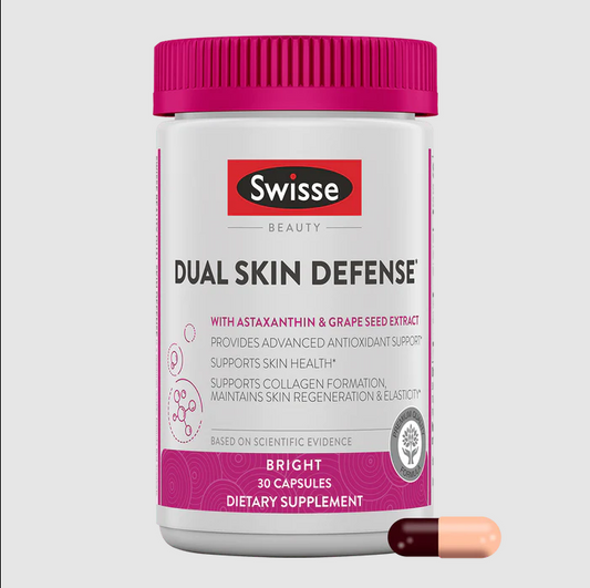 Swisse Beauty Dual Skin Defense Supplement | Astaxanthin, Grape Seed Extract, and Vitamin C | Supports Collagen Formation, Skin Elasticity, Antioxidant Protection & Regeneration | 30 Capsules